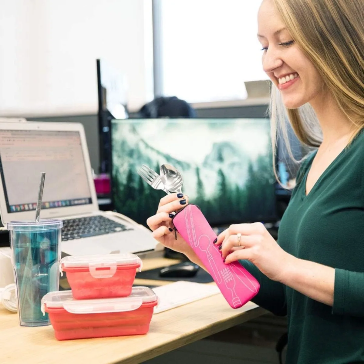 Travel Cutlery Box with Knife, Fork, Spoon, Chopsticks and Reusable Straw Set Suitable for Office, Travel or Camping Accessories
